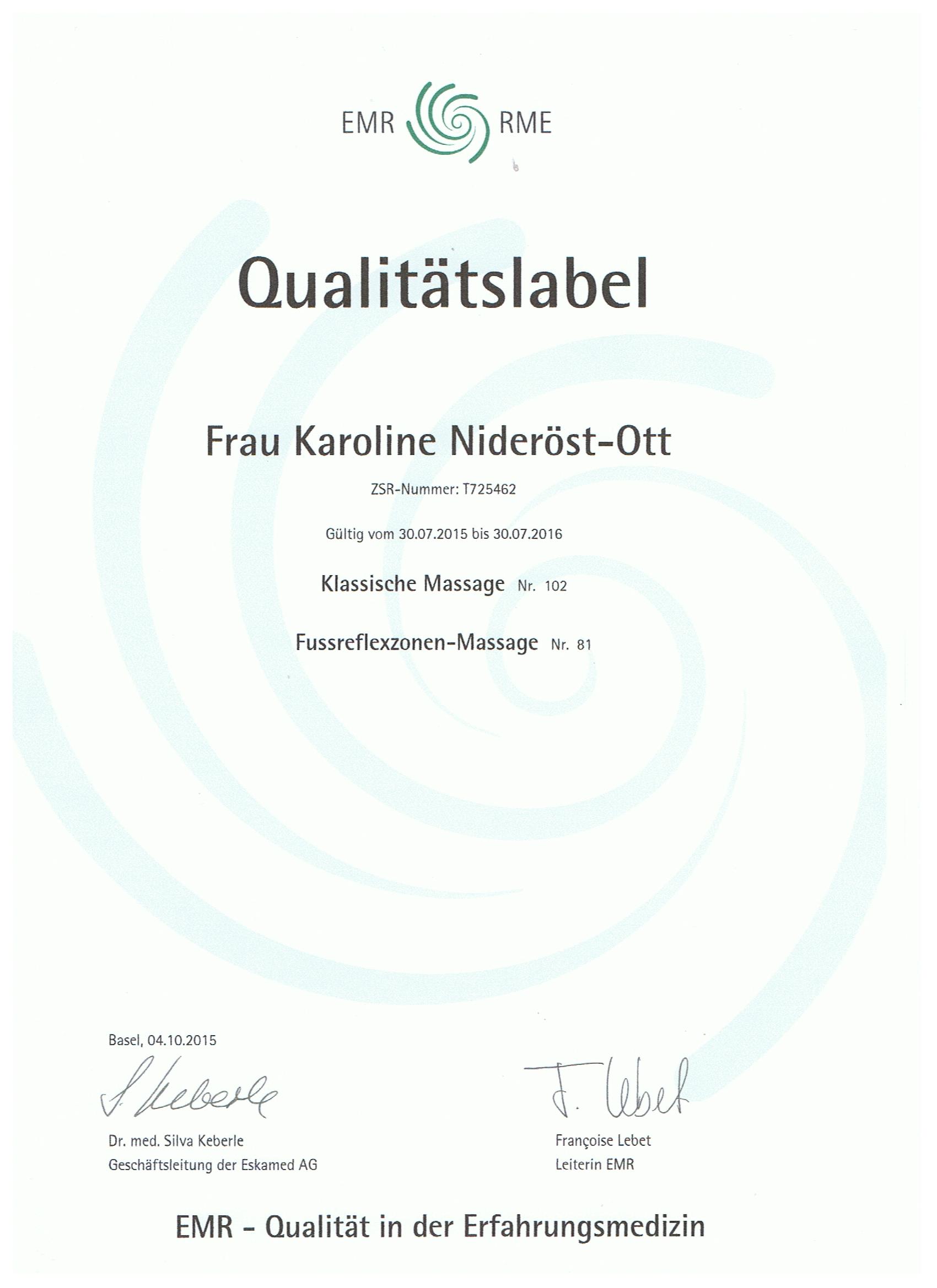 Krankenkassenanerkennung (EMR – Qualitätslabel) (per Klick gelangen Sie zum EMR-Index)